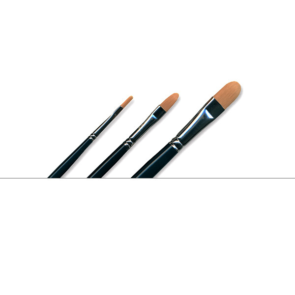 Long handled synthetic brush for acrylic or oil painting. Soft bristles.