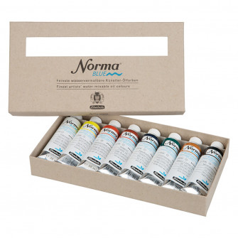 Unlike traditional oil paints, Norma Blue paints can be thinned and cleaned with water, eliminating the need for solvents such as Turpentine and White Spirit. Norma Blue paints are formulated with high-quality vegetable oils and do not contain any animal-derived ingredients or heavy metal pigments, including Cobalt, Cadmium, or Zinc Oxide pigments.